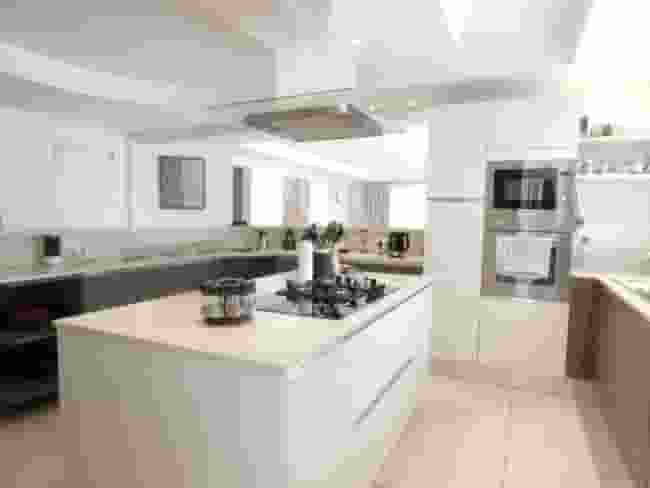Step into a spacious open-plan layout where the kitchen, dining, and living areas flow seamlessly, perfect for both entertaining and everyday living. The large kitchen is a chef’s delight, offering ample counter space, sleek cabinetry, and a modern finish that opens up to the heart of the home.