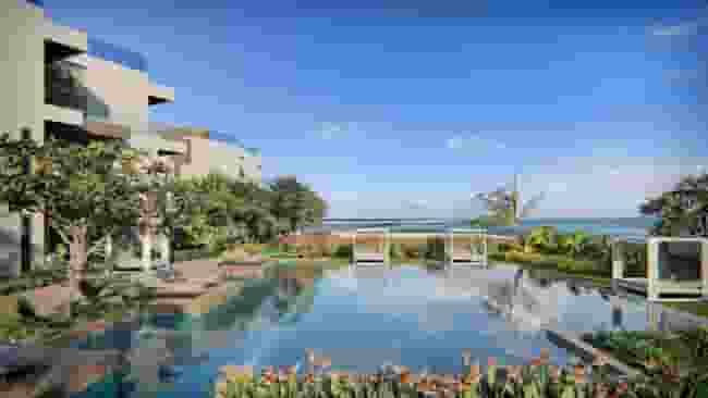 Own a beachfront apartment or penthouse at The Peninsula, Les Salines, Black River. Ocean views, luxury design, and direct beach access.