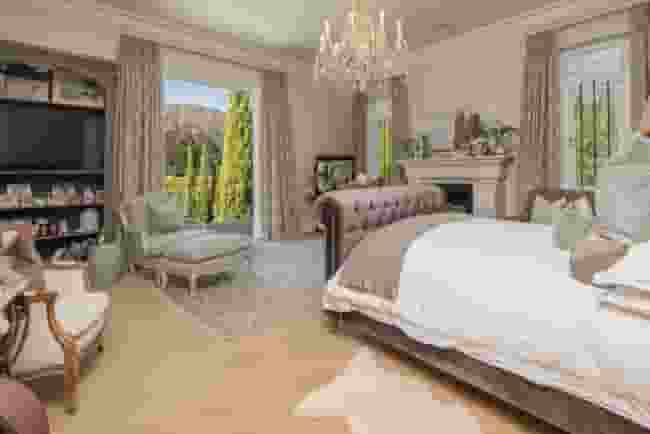 Set in the quietest corner of the Franschhoek valley, just two kilometres from the village centre, Sandstone House commands attention from the moment you arrive. The paved courtyard, anchored by a sculptural fountain and flanked by stone lions, leads to an ivy-covered façade. The central gabled entrance rises like a pavilion, all classical curves and considered details. This is a residence that understands the power of first impressions.