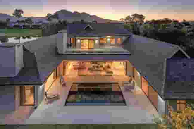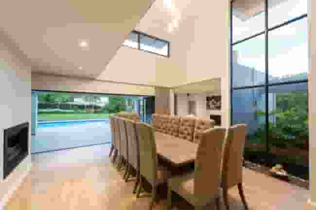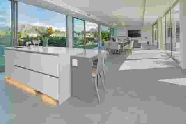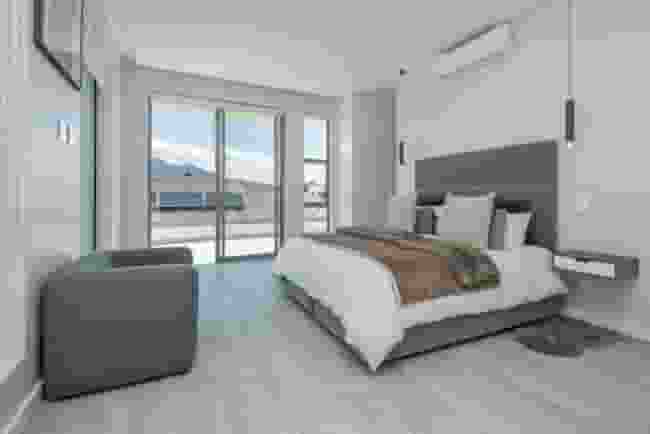 The home showcases clean architectural lines, expansive glass panels, and open-plan living spaces, maximising natural light and mountain views from nearly every room.