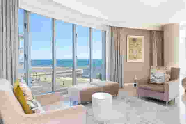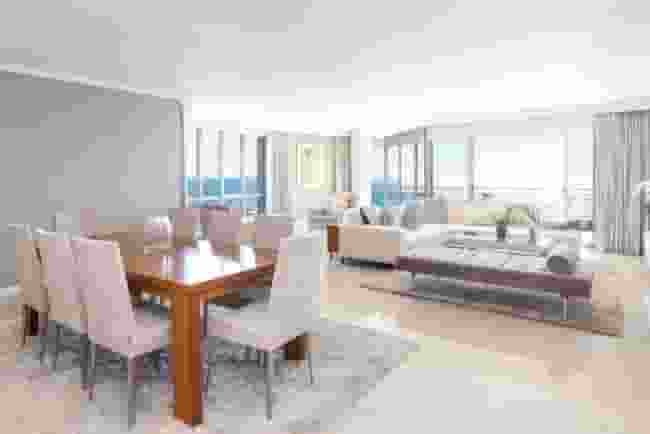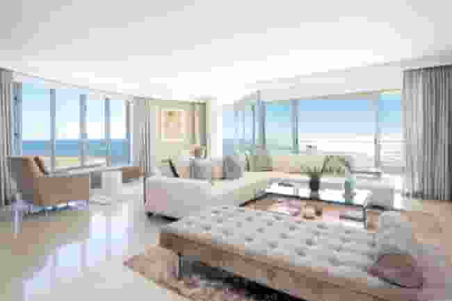 Step into refined luxury with this meticulously renovated 317sqm apartment, perched majestically on the Platinum Mile of Mouille Point, Cape Town. Boasting an exquisite elevation, this home offers three spacious bedrooms, each with its own en-suite bathroom and balcony, along with a convenient guest powder room.